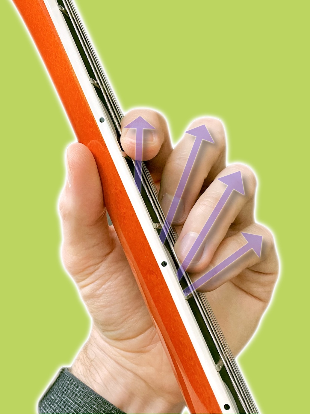 The other fingers angle backward. This posture requires way less strength and allows the fingers to settle into a more natural position.